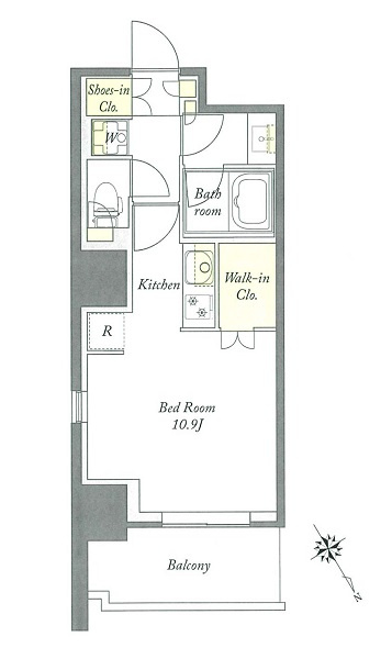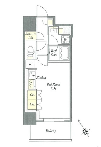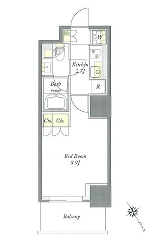K 2.7帖 1室/洋室 8.9帖 1室 - 向き