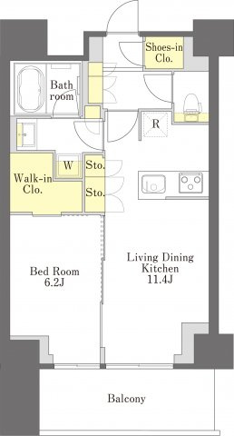 LDK 11.4帖 1室/洋室 6.2帖 1室 - 向き