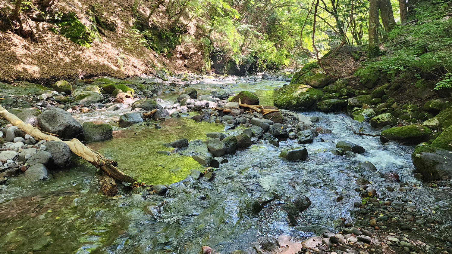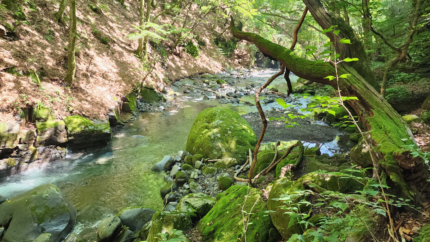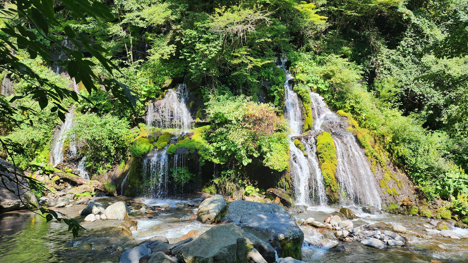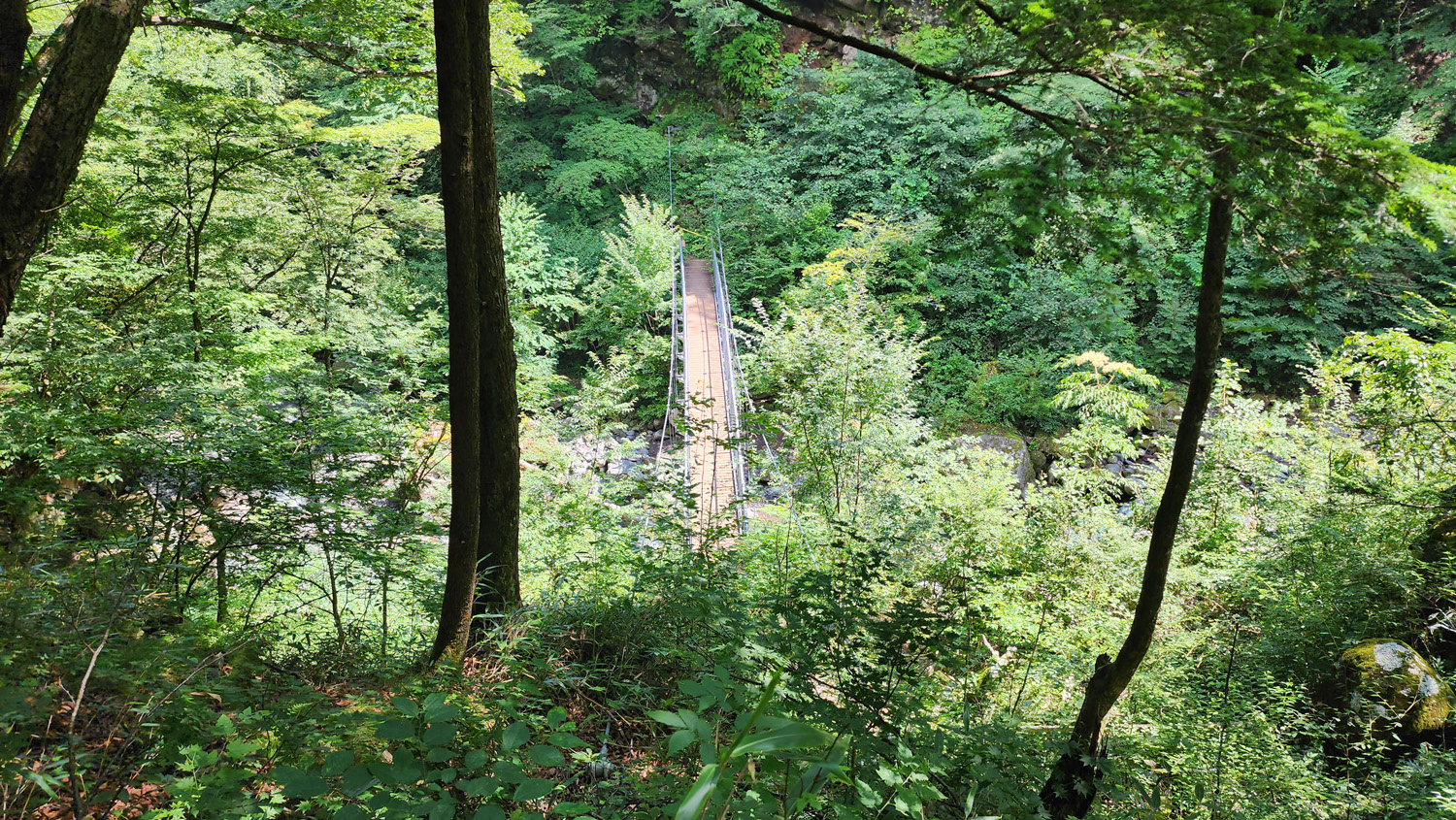 ソフトクリームで小腹を満たした後、涼を求めて吐竜の滝へ。清泉寮から吐竜の滝へは自然歩道を通っていけるのですが、歩いてみたらけっこうガチな登山道でした。ここは登山とかしたことない人がお散歩感覚で歩くのはあまりオススメしません。専用の駐車場側から歩いて来れば滝まですぐ来られるので、そっちから歩くことをオススメします。