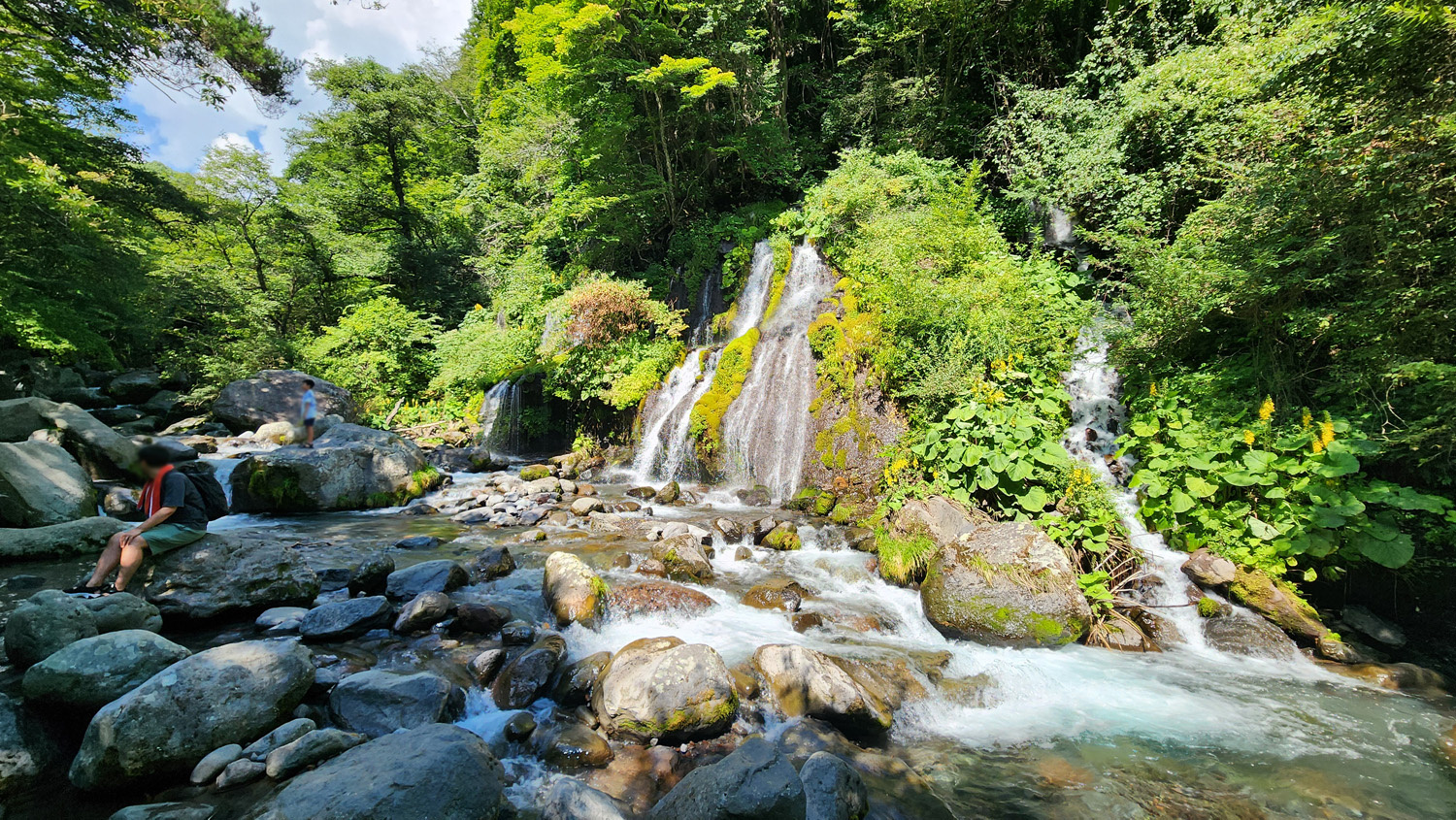 13時53分 途中のタマアジサイやレンゲショウマなんかに癒されつつ、吐竜の滝に到着。滝に行きつくまでは誰一人会いませんでしたが、滝に着いてみたら家族連れが何組も滝を見に来ていました。