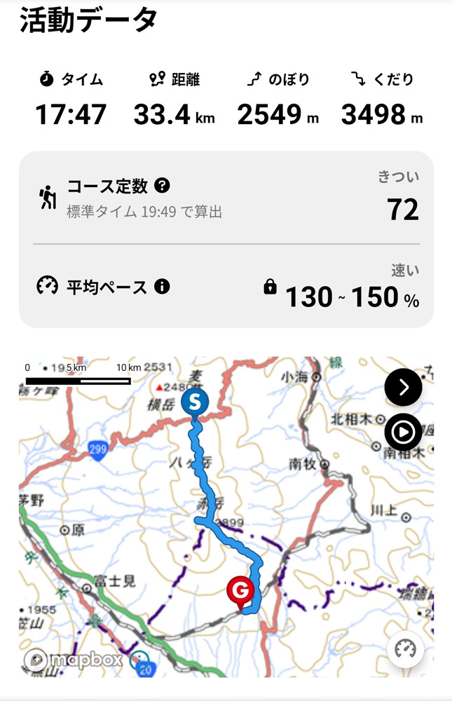 14時40分 滝を見終わった後さらに歩いて本日の最終ゴール、甲斐大泉温泉パノラマの湯に到着。ここは甲斐大泉駅から徒歩数分と近いため八ヶ岳とか来るとけっこうな頻度で来てしまいます。外風呂の温度がぬるめなので長めに入っていられるのもうれしいポイント。ここで温泉入ってサッパリしたら着替えを済ませて二日間の山行終了です。おつかれさまでした!