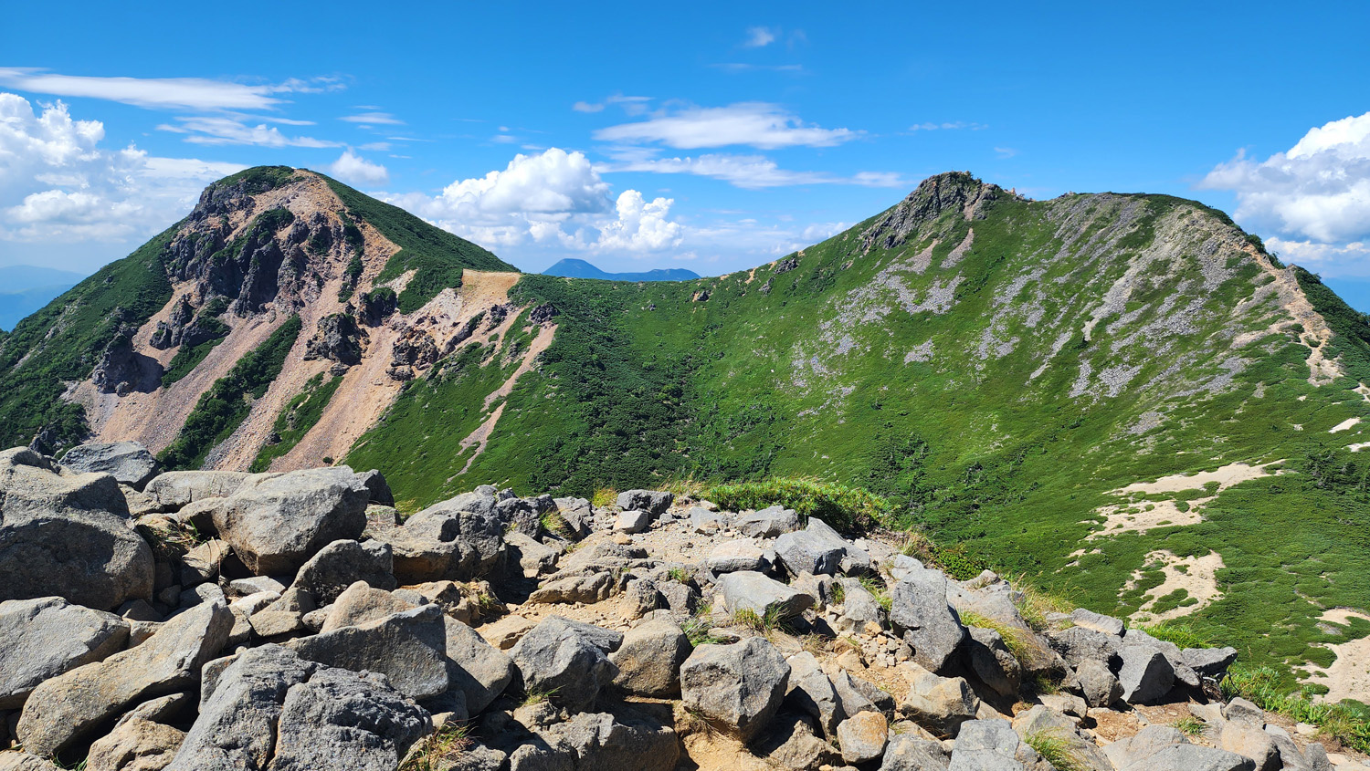 13時47分 箕冠山(みかぶりやま)(標高:2,581m)到着。ここはピークというより普通に通過点という感じ。