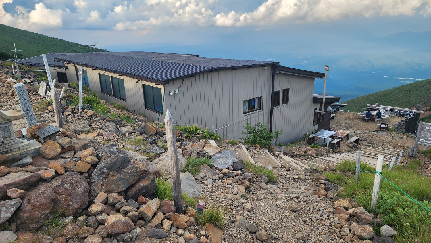 この日はお盆明けの平日でしたが団体予約が入っていたらしくほぼ満室で賑わっていました。硫黄岳山荘はこんな山の中にありながら、シャワー使用可(別途500円)、トイレは水洗でウォシュレット付き、乾燥室あり、水の補給も宿泊者は無料、とかなり設備も整っていまして、私もはじめて泊まりましたが人気があるのも頷けました。