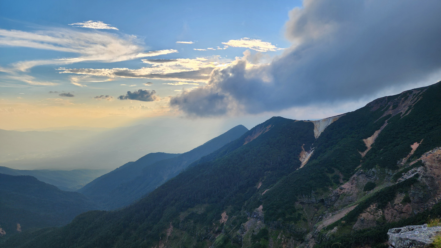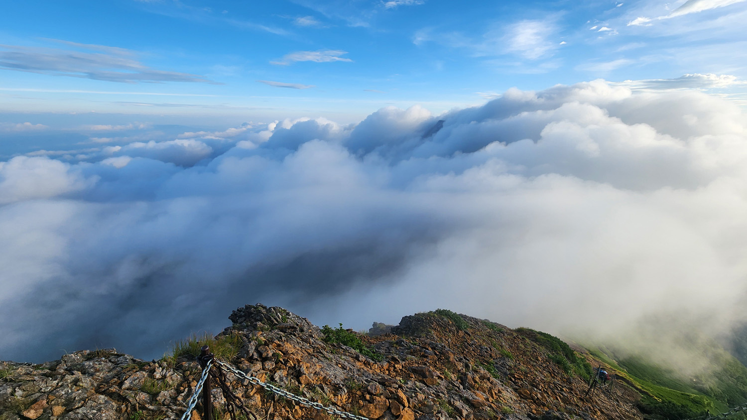 赤岳山頂手前で振り返ると雲の動きが速い。目まぐるしく変わる景色。雲一つない晴天ももちろん好きですが、これはこれで面白い。