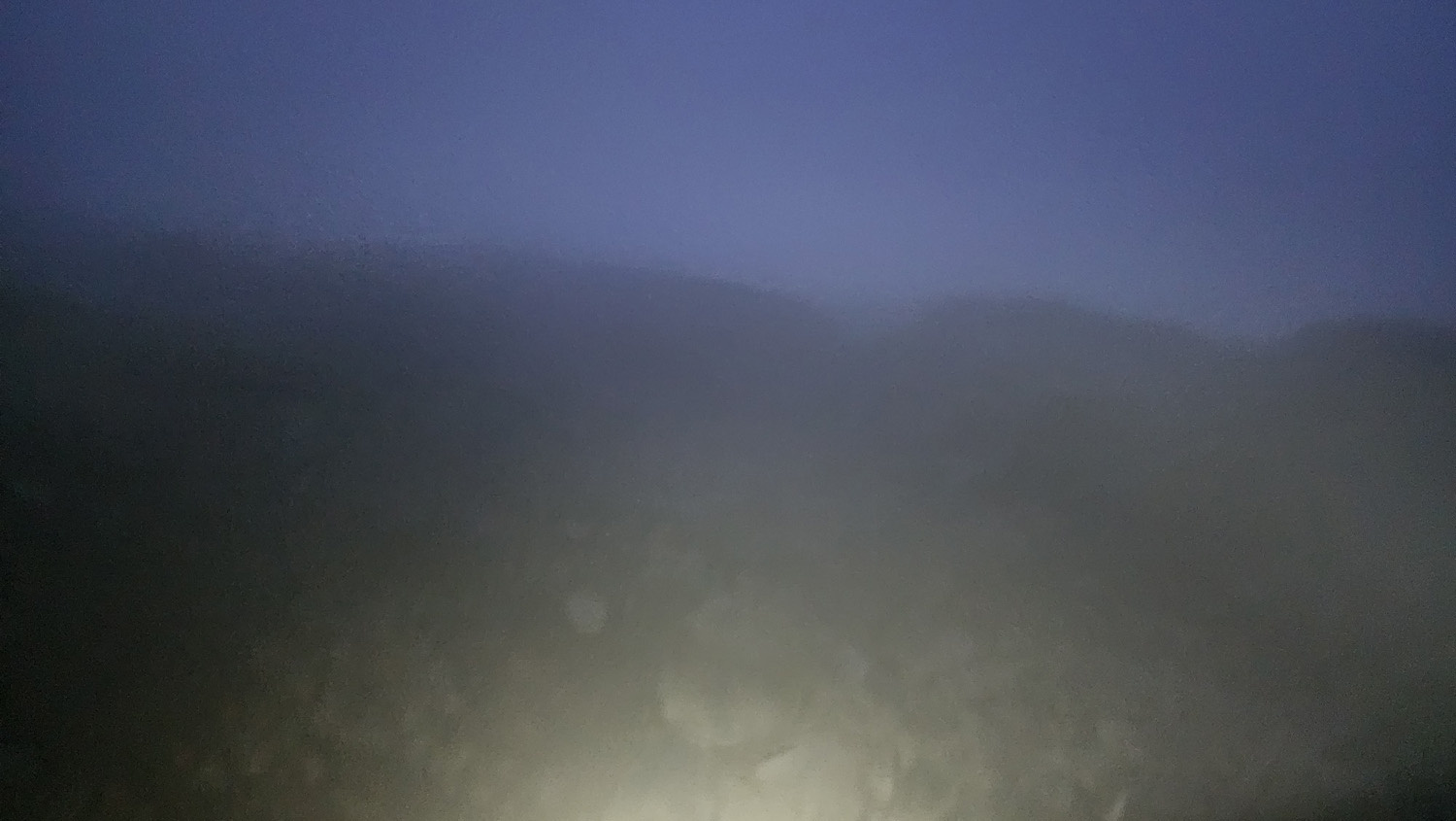 さて、二日目。山荘出発は4時30分。山荘で一緒になった方はルートが別だったのでここでお別れ。3時頃に一度起きたときには星空も見えていたので、ご来光期待できるかなと思っていたのですがご覧の通りのガス・ガス・ガス。なんも見えやしません(涙)。横殴りの風も吹いていてこういう時はヘッドライトの明かりもあまり効かないので慎重に進みます。