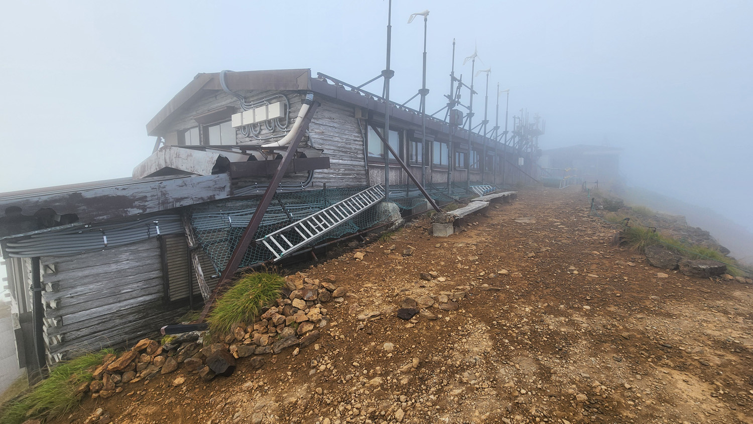 5時50分 赤岳天望荘通過。一旦ガスが取れてきたかなと思いきやまたも真っ白。