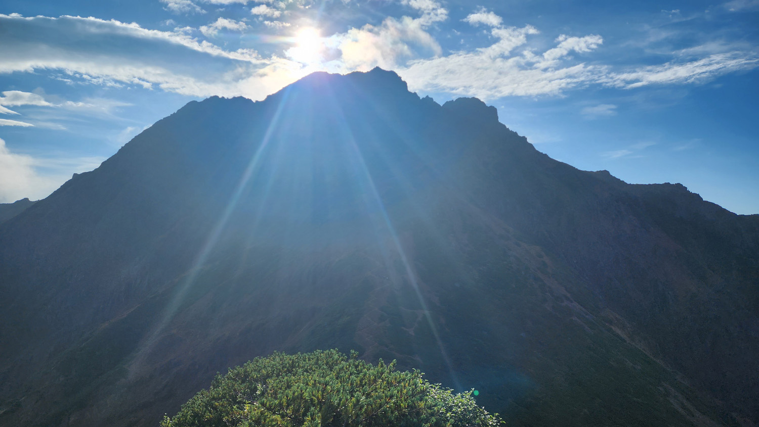 中岳から見た赤岳(もろ逆光)