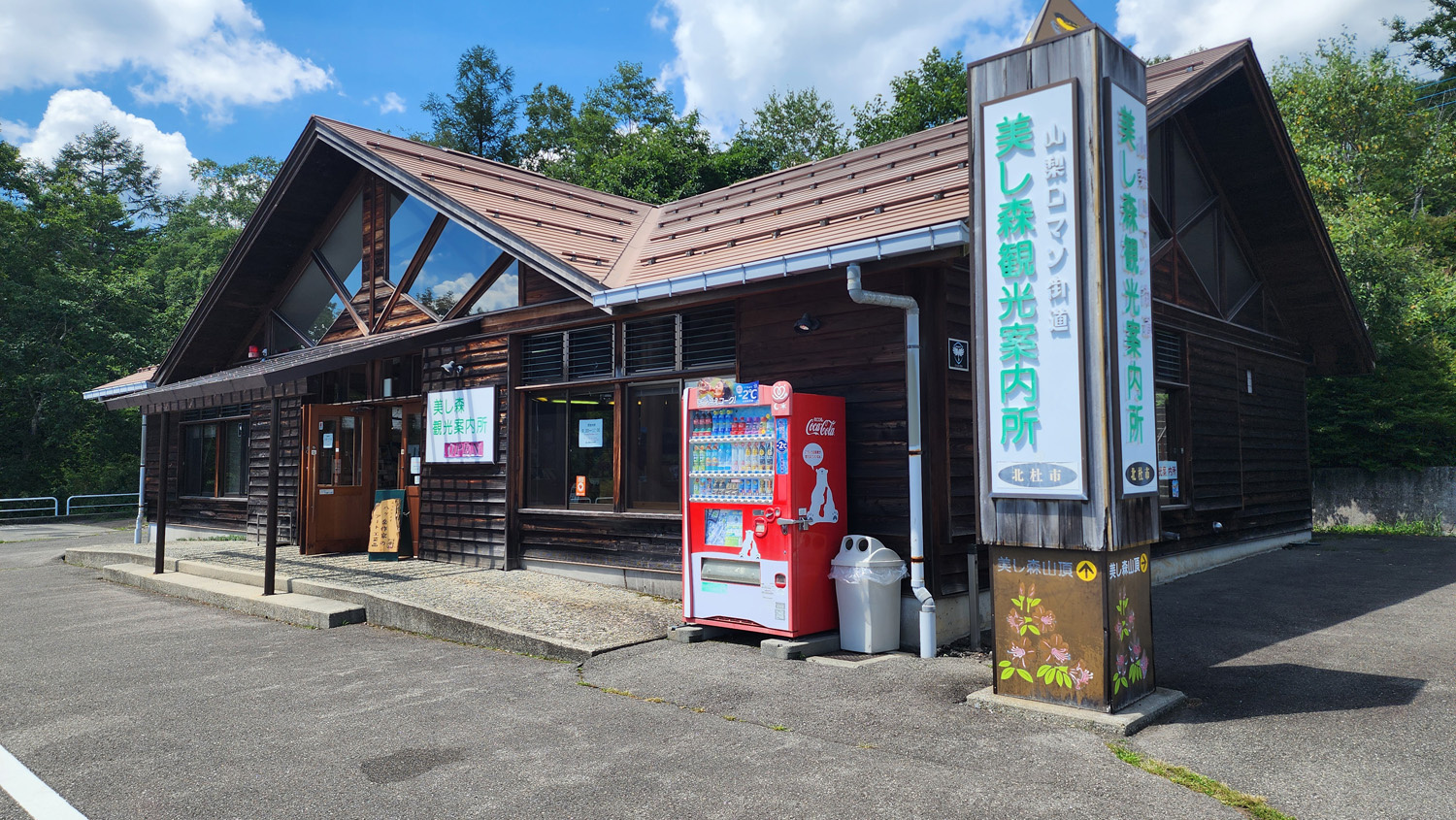 美し森の駐車場のところに自販機があるので、ここでコーラ購入。登山の後の炭酸は最高。ここから清里駅までまっすぐ歩いて終了にしてもいいんですが、今日はもうちょっと歩きます。