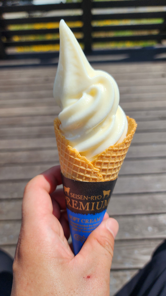 そしてお目当ての清泉寮プレミアムソフトクリーム。お値段もプレミアム(1個900円)ですが、めちゃくちゃ美味しかったです。